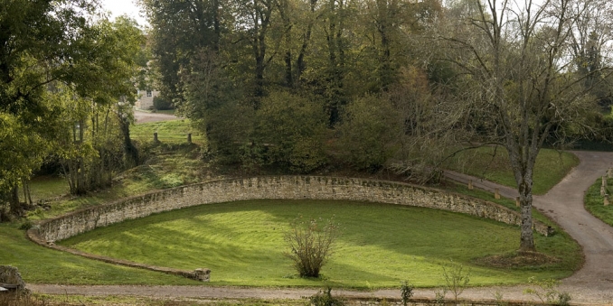 Le médiateur proposa Rémy Zaugg, artiste suisse connu pour la pertinence de ses points de vue sur l'espace public et social. Depuis le milieu des années soixante, Zaugg analyse les conditions de perception liées à l'œuvre d'art. Partant d'un tableau de Cézanne, il développe la conscience de sa perception, procède de la dénomination, et aboutit à la " transposition de la substance picturale en une substance linguistique " (1963-1968). Cette recherche fonde l'ensemble de sa création. Zaugg est réservé à l'égard du désir qui sous-tend la commande : célébrer un monument patrimonial alors que celui-ci est déjà d'une forme parfaite. Il bouscule sans ménagement les commanditaires pour leur faire prendre conscience de leur responsabilité à l'égard de l'environnement du village qui est lui dégradé. Les commanditaires agréent et la commande est dès lors reformulée pour recréer cet environnement.